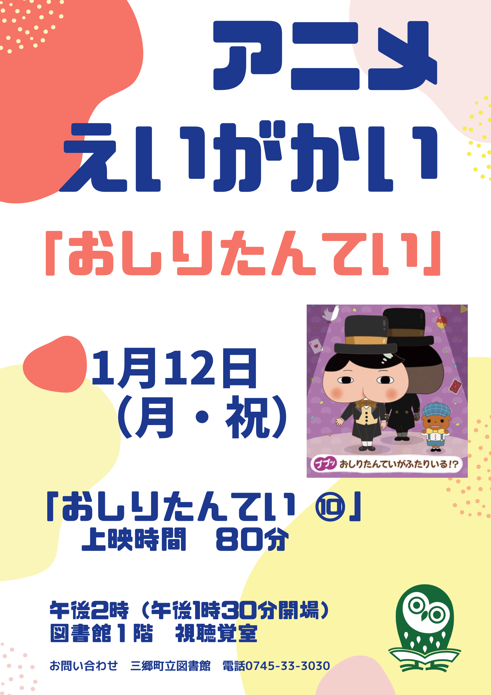 「アニメ映画会」のお知らせ 1/12